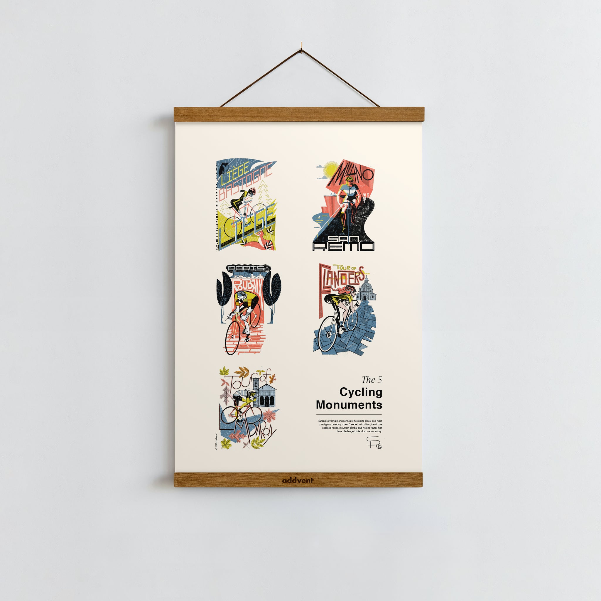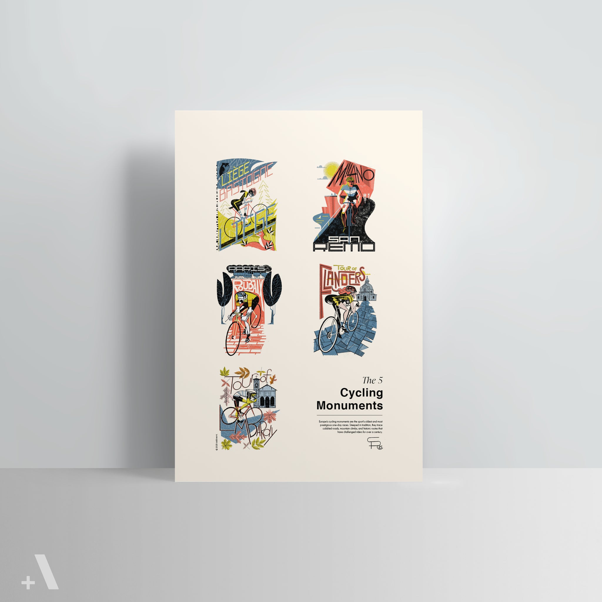 This Poster features Europe's 5 Cycling Monuments: