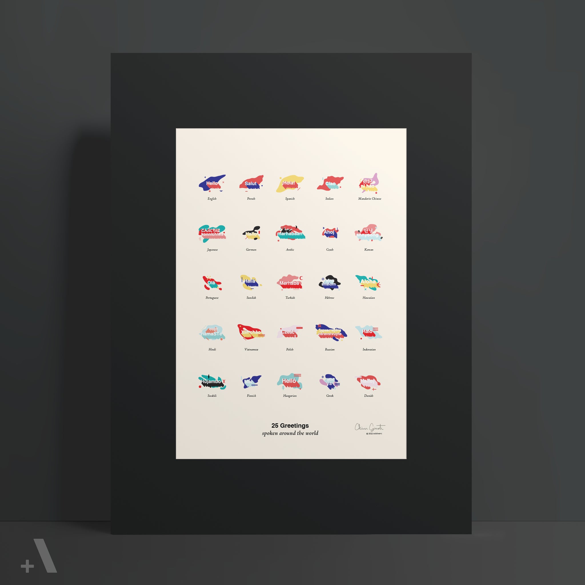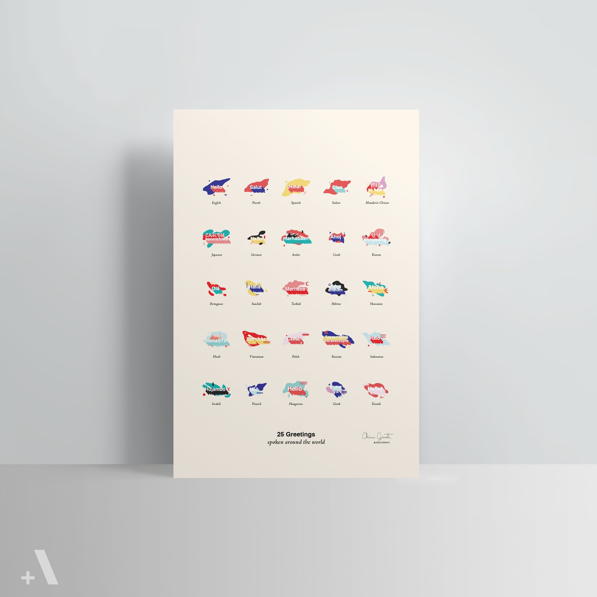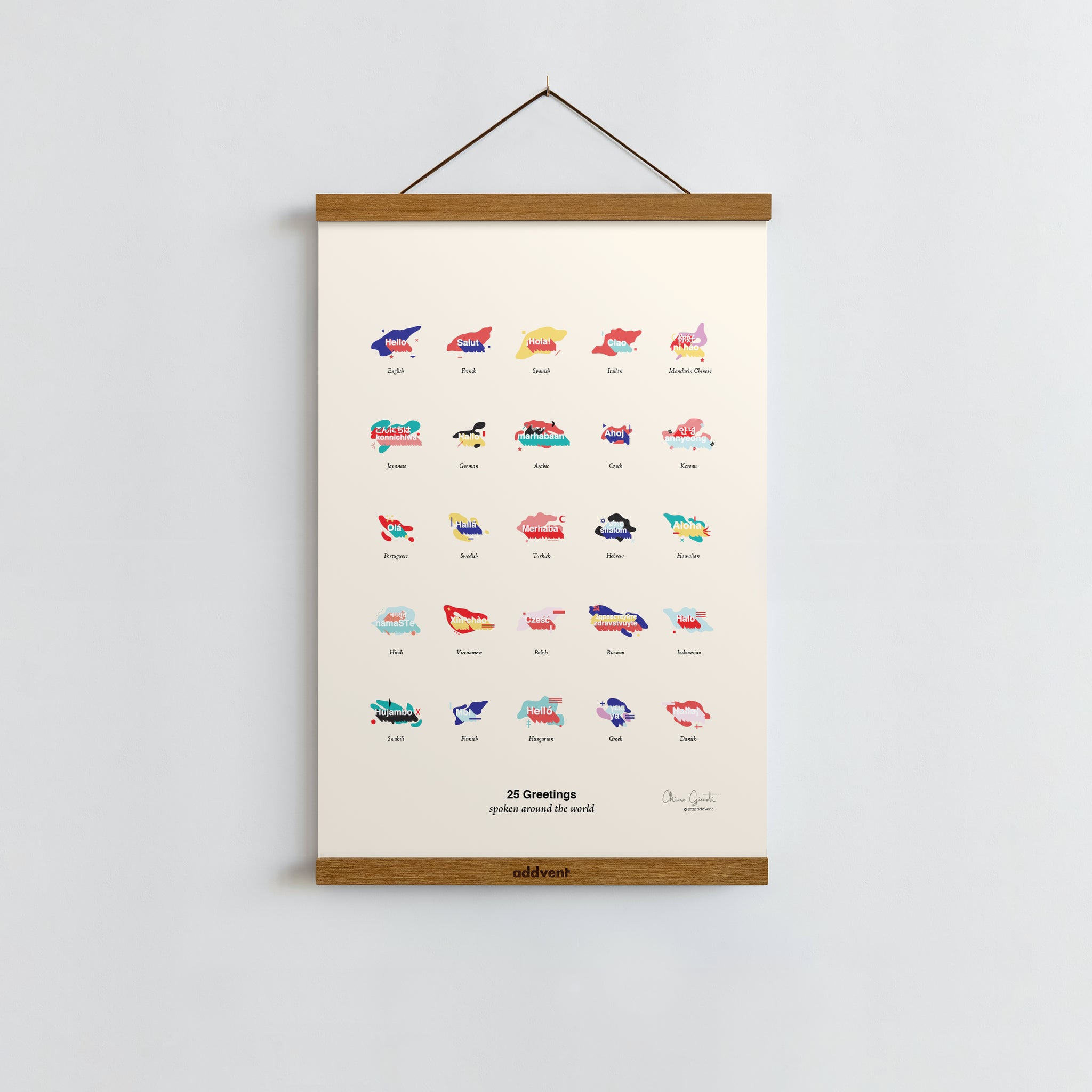 This Poster features 25 Greetings from Around the World: