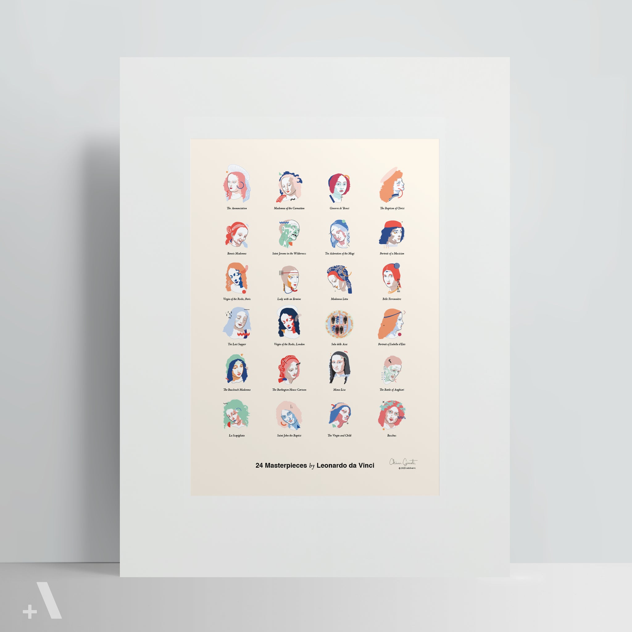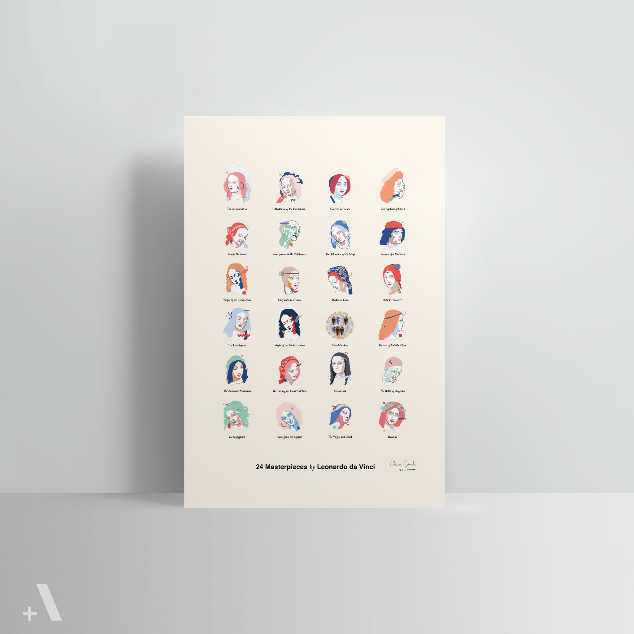This Poster features 24 Masterpieces of Leonardo da Vinci:
