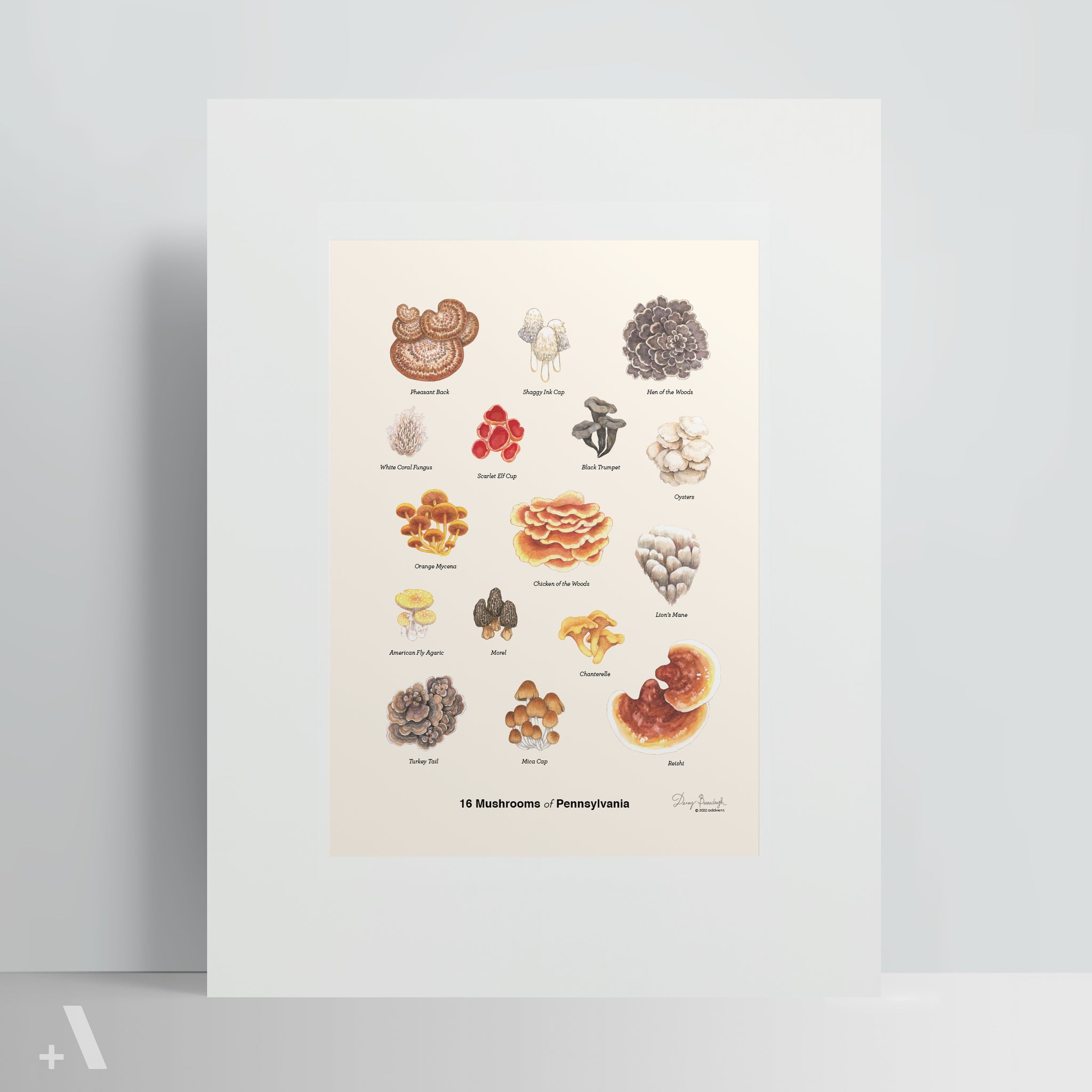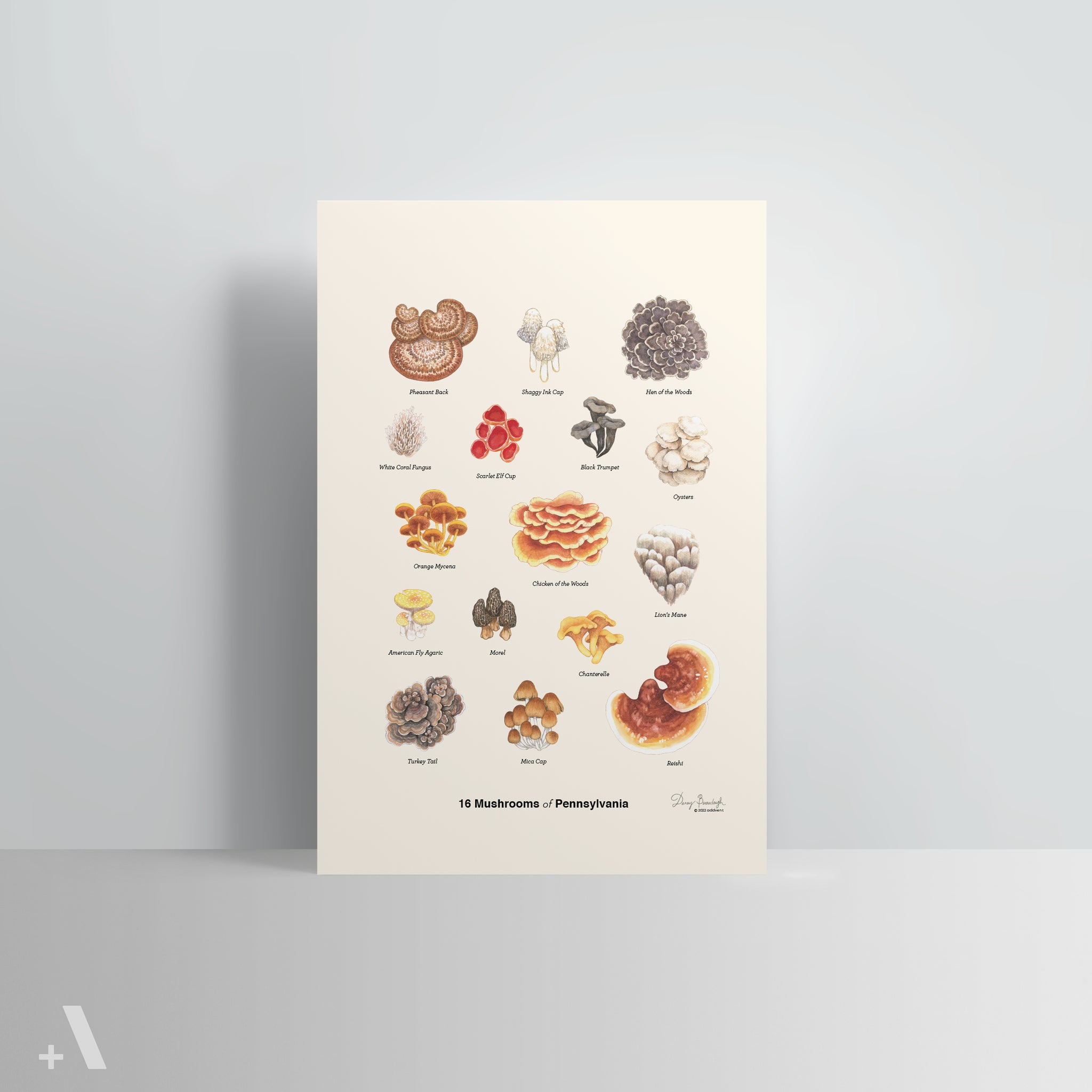 This Poster features 16 Mushrooms of Pennsylvania: