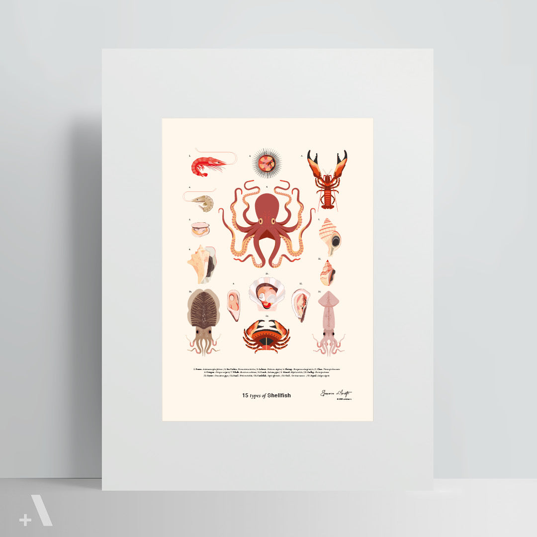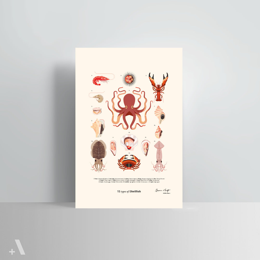 This Poster features 15 Shellfish: