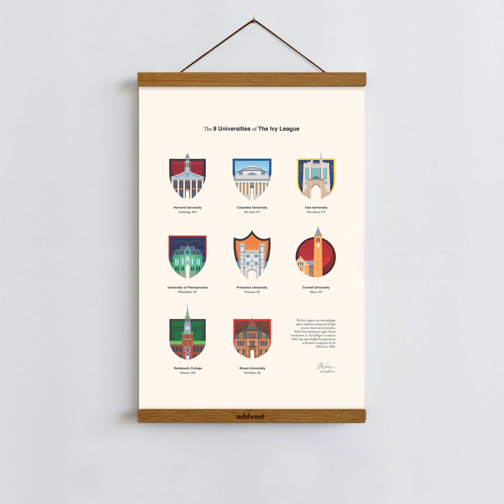 This Poster features all 8 Universities of the Ivy League: